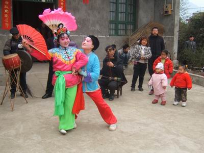 一旦一丑表演,用手巾和折扇作道具。旦的表演含蓄細膩,動作優美輕俏,以眉目傳情(脧眉眼)為特點。丑的表演活潑聰明,俏皮逗樂,動作粗獷。流傳在境內的地花鼓有“洗菜心”、“銅錢歌”、“望郎歌”等。