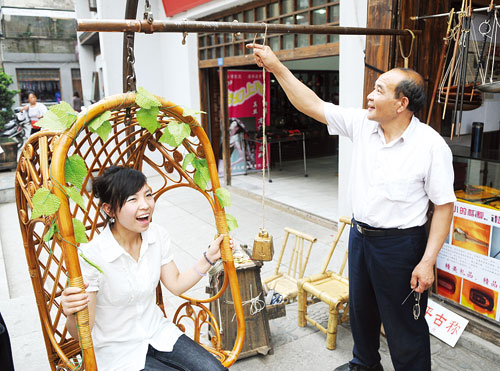 歲月悠悠,蒼桑易老,蘆江八景隨同古鎮的式微而漸行漸遠,八景的美麗也由此淡出了古鎮人的視線。然而記憶猶存,遺跡猶在:濤聲依舊的湘江岸邊,一棵棵依然守望著碧水藍天的古柳,便收藏著當年“柳浪聞鶯”的遺傳秘碼和鶯啼聲聲中的浪漫故事。散落在古鎮的街巷庭院和廢墟中依然完好的南瓜石墩,便有往日夏天傍晚的習習涼風從石中逸出,輕聲訴說著“石礅夏涼”的美妙光景。湘江邊那座曾經映照過船帆點點和一江逝水的樓閣,雖然雕梁畫棟已成虛而遺跡難覓,卻被作為“望江樓”商標復活在了名聞遐邇的靖港布鞋上,讓后人依然能一睹“樓鏡瀟湘”的精致。那兩棵“七星傲月”檀和“八卦傳神”樹的奇枝妙冠雖然因蒼老而羽化登仙,盤虬蒼然的樹根卻依然鼾眠在古鎮天主教堂的斷垣殘椽和插花寺土堆下夢著曾經的枝繁葉茂和傳奇體驗。“扇子迎客”的扇子碼頭,“獨腳鶴立”的獨腳吊樓,“梨園戲水”的臨河戲臺,從它們留守在故址中的石墩、石柱、石板和巧奪天工的石雕,依然能喚起古鎮人從記憶深處復原出它們當年在熱鬧繁華中的妖嬈和神圣。