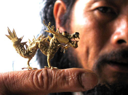 長沙地區的傳統工藝品,系用棕櫚葉編成的各種動物,種類很多,如鳥、蟲、魚、蝦、鶴、蛇等,形象逼真,栩栩如生。曾參加德國萊比錫世界博覽會,人們贊嘆它“不可思議”,法國藝術館特意收購珍藏。棕櫚為常綠喬木,望城縣湘江兩岸都有種植,藝人們采集棕葉,編織成各種小動物,成為“江南一絕”。