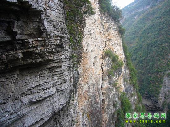 【圓桶絕壁】來到這里,我們朝右邊看去,會驚奇地發現,這里形成了一個天然的圓桶型的絕壁,既不是人工所鑿,也不是瀑布流水所沖刷而成的。同時,整個絕壁上一直是只長草而不長樹。這到底是怎么一回事呢?連地質學家和植物學家都不能給出準確的解釋。這便是我們張家界大峽谷五大未解怪謎的第三謎。