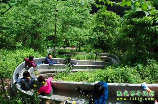 該滑道由清一色的花崗石板拼砌而成,再作精工打磨和拋光工藝處理,內槽深45厘米,寬50厘米,滑行用時三至五分鐘,比平常步行跋涉游覽節約20分鐘,是張家界大峽谷風景區建成的游客參與性設施,也是緩解游客游覽體力透支的人性化服務設施之一。它將成為海內外游客前來張家界大峽谷觀光游覽時節省時間和體力的最佳選擇。