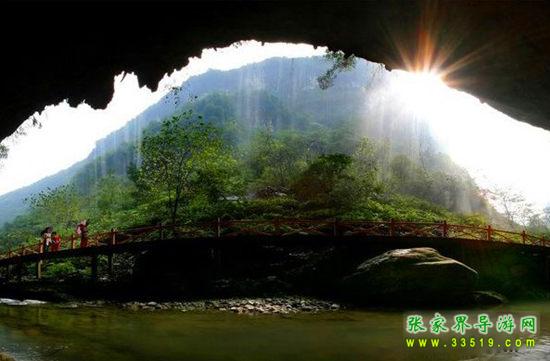 【中華牌天然空調】喲,我們行走到這里,怎么感覺到了陣陣涼風撲面而來?!奧,原來是游道的轉角處有一個天然的涼風洞。大家都知道,張家界的天然溶洞很多,比如黃龍洞、龍王洞、九天洞,還有我們公司即將開發的更漂亮更具有特色的懸絲洞。溶洞內都是冬暖夏涼,和洞外的氣溫不一樣。所以,游客朋友們都叫它中華牌天然空調。大家可以在這里盡情地享受天然空調。