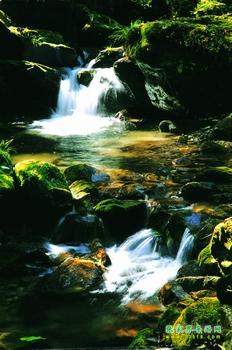 為沙刀溝第一景。一塊崩塌的巨石橫臥溪中。石的一端擱于右岸,供成一孔。溪水穿孔而過,發出叮叮咚咚的響聲,在溪內沖成一個1米多深的潭。潭水清澈如鏡,潭底紅白砂石光潔晶瑩,魚、蛙時而嬉游其中。潭兩邊石峰高聳環峙,闊葉林、灌木叢茂密常青,峰麓遍生苔蘚,如鋪綠毯。山峰、碧空倒映潭底,水中掠過縷縷白云。潭右上方有一高約50米、直徑約5米的石柱立于路旁,綠葉扶疏,秀麗挺拔,與清心潭陪襯成奇特佳境。立潭觀景,塵念俱消。